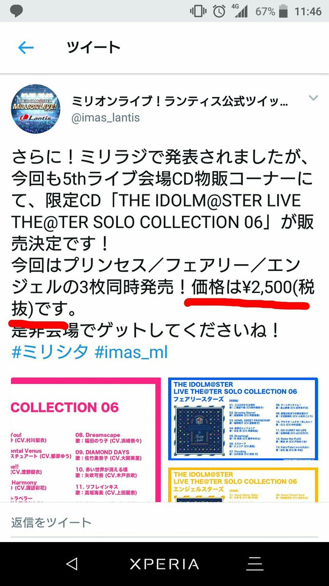 ミリオンライブ ランティス公式ツイッター さらに ミリラジで発表されましたが 今回も5thライブ会場cd物販コーナーにて 限定cd The Idolm Ster Live The Ter Solo Collection 06 が販売決定です 今回はプリンセス フェアリー エンジェルの3枚同時